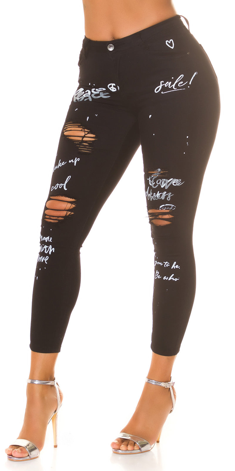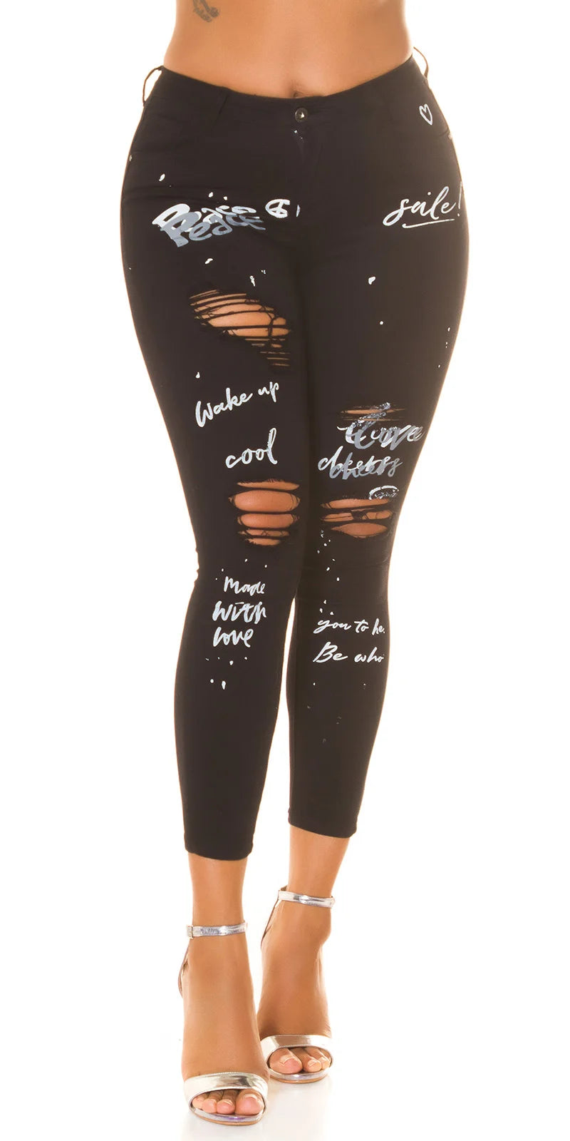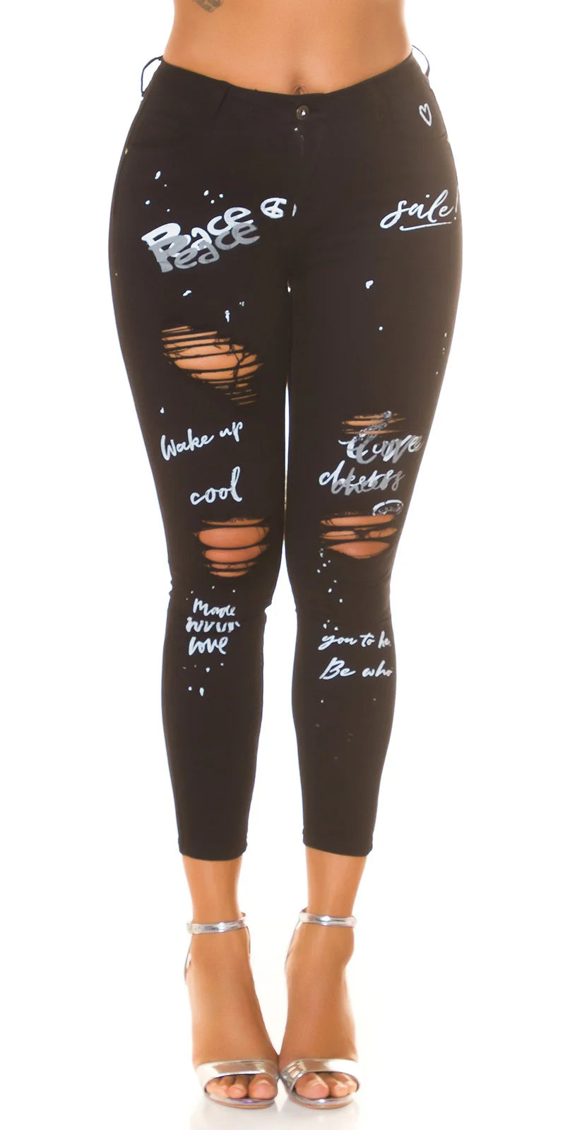 Statement Denim Skinny Jeans im Used Look: Perfekte Kombination aus Stil und Attitude. Mit trendigen Prints und raffinierten Details zieht dieses Design alle Blicke auf sich. Der Used-Look verleiht einen lässigen Charakter, während die figurnahe Passform ein modernes Finish bietet. Ideal für ausdrucksstarke Outfits, die Persönlichkeit und Selbstbewusstsein ausstrahlen.